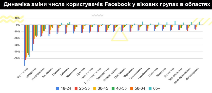 В Житомирській області зафіксований найменший спад серед усіх вікових груп Facebook і приріст аудиторії 65+