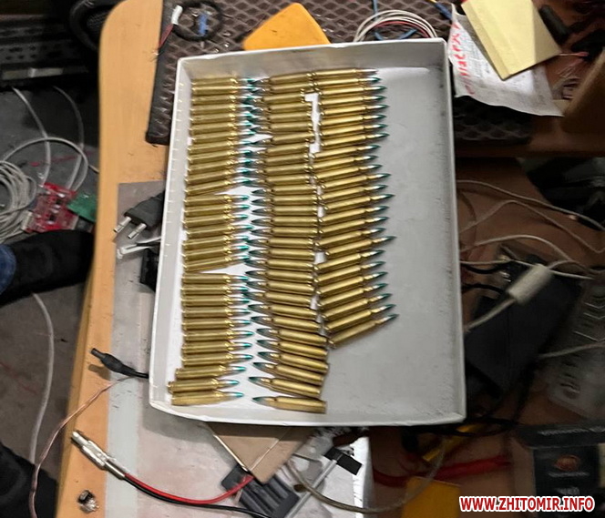 «Під час слідчих дій в оселі чоловіка поліцейські виявили близько півтори сотні набоїв калібру 5,45 мм. А в підсобному приміщенні власник зберігав магазин для набоїв, ручну димову гранату та порохові заряди. Там же поліцейські виявили згорток з порошкоподібною речовиною, ймовірно, наркотичним засобом. Походження таких запасів чоловік правоохоронцям не пояснив. На місці події працювала слідчо-оперативна група Житомирського райуправління поліції. Усе виявлене поліцейські вилучили та направили на експертне дослідження до Науково-дослідного експертно-криміналістичного центру МВС», - йдеться в повідомленні.