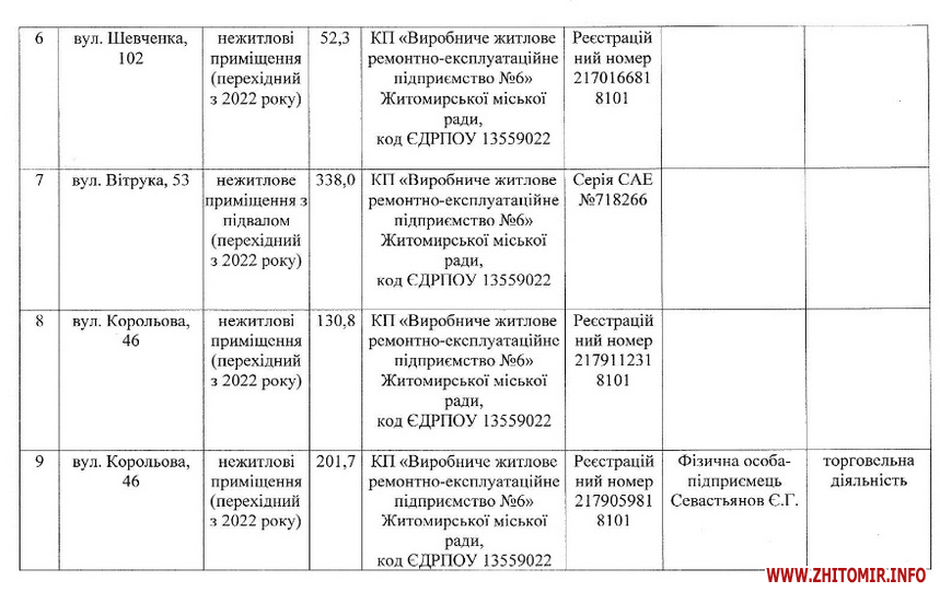Як повідомляв Житомир.info, 13 лютого 2023 року оприлюднили проєкти рішень сесії Житомирської міської ради про приватизацію шляхом викупу п’яти приміщень, всі рішення були ухвалені на сесії 23 лютого.