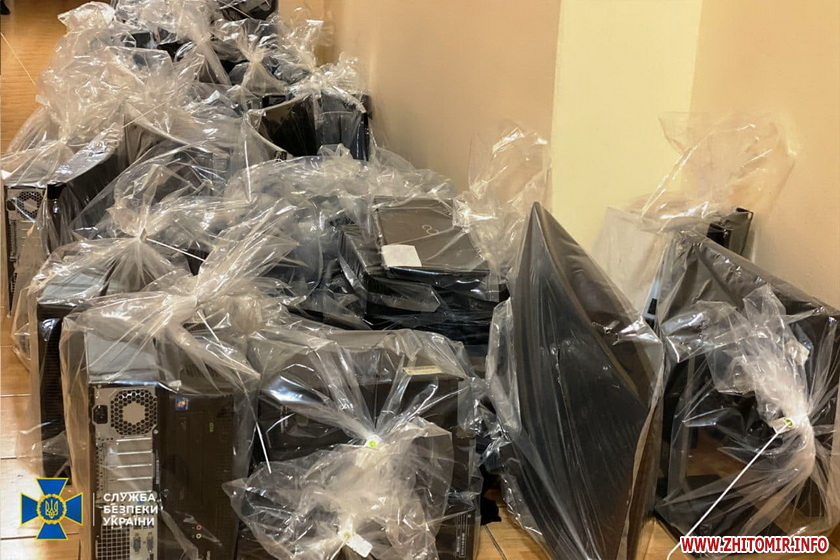 «За результатами обшуків у містах Житомирі та Києві виявлено і вилучено більше 230 одиниць компʼютерної та іншої техніки (ноутбуки, монітори, системні блоки, сервери), значну кількість мобільних телефонів, телевізорів, платіжні термінали, сейфи, майже один мільйон готівки у доларовому, євро та гривневому еквіваленті, 7 транспортних засобів, чорнові записи тощо», - інформує прокуратура.