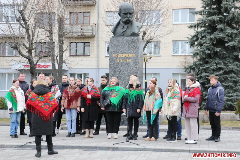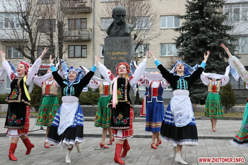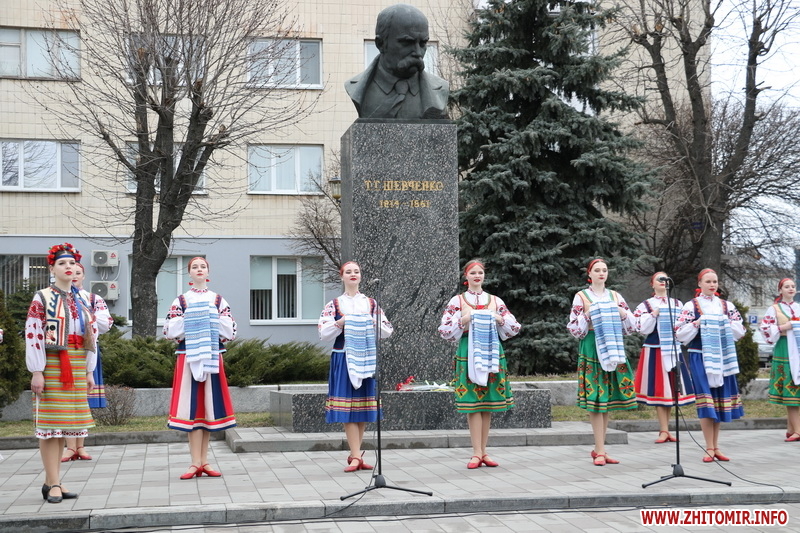 Як повідомляв Житомир.info, 9 березня 2019 року біля пам’ятника Тарасу Шевченку в Житомирі зібралося кілька сотень містян, аби відзначити 205-ту річницю народження Кобзаря: розпочалися урочистості традиційно зі спільного виконання Гімну, опісля представники творчих колективів та студенти декламували та співали вірші видатного поета.