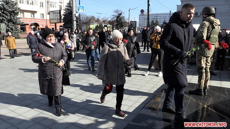 У Житомирі 14 березня вшанували пам’ять полеглих добровольців, котрі від 2014 року стали на захист України. Біля пам’ятного знаку «Захисникам України у війні з російським агресором», з квітами та лампадками у руках, зібралося близько півсотні людей. Серед них представники влади, духовенства і рідні загиблих захисників. Подекуди у останніх бракує слів, позаяк сльози перехоплюють подих, втім єдиний меседж на всіх - українці зобов'язані розуміти і пам’ятати, якою ціною виборюється свобода та незалежність країни.