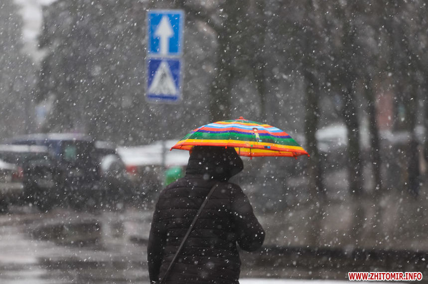 28 березня у Житомирі на зміну теплій і сонячній погоді прийшло різке похолодання до 0 градусів та дощ з мокрим снігом.