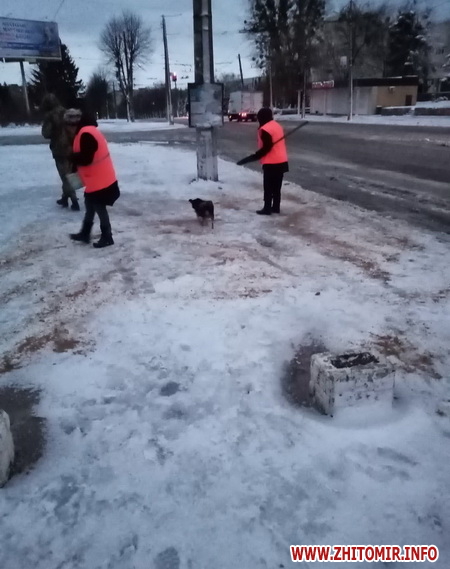 У Житомирі 29 березня з 5 ранку комунальники розчищають та посипають тротуари.