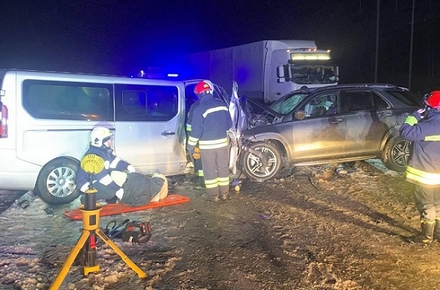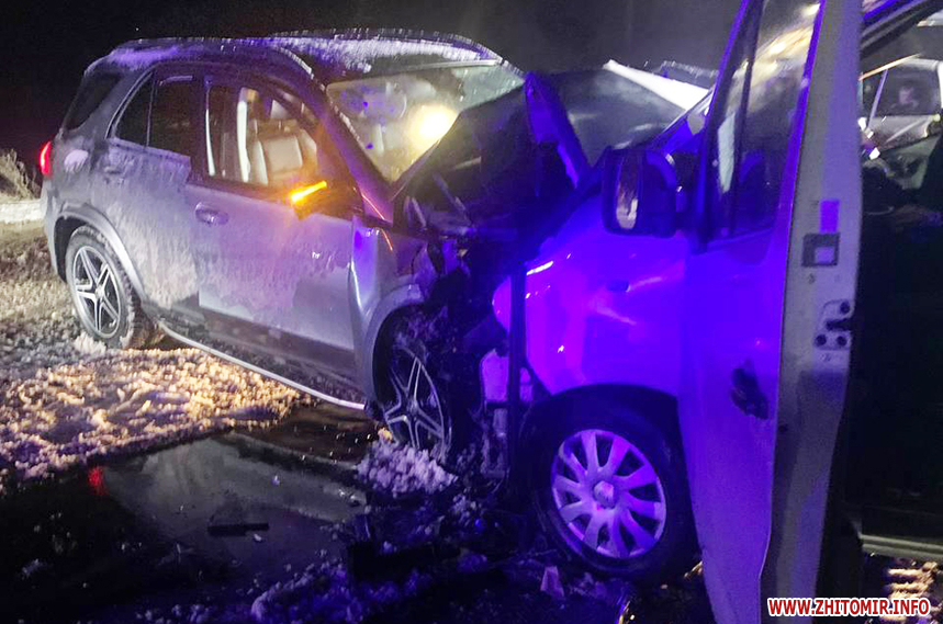 Увечері 28 березня поблизу Житомира бус виїхав на зустрічну смугу руху та зіткнувся з кросовером, травми отримали четверо людей.