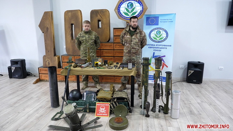 «Ось це касетні боєприпаси ПФМ-1 – учбова, про що свідчить літера «У» на маркуванні, такі самі бойові, але без трафарету з літерою «У». Дуже небезпечна міна, несе велику загрозу. Чому вони маленькі? Не виглядають страшними, привертають увагу дітей, які можуть взяти до рук та занести в будинок, вони ховаються у траві, їх не видно, їх покриває земля», - розповідає начальник циклу вибухотехнічної підготовки Житомирської академії поліції Сергій Кадлубівський.