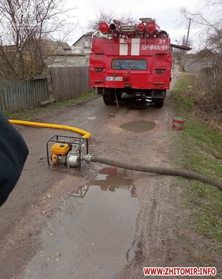 Крім того, упродовж минулої доби бійці ДСНС відкачували ґрунтові води з приватних домоволодінь. Зокрема, у м. Малин Коростенського району підтопило житловий будинок, гараж та дровітник. Вода вже потрапила у помешкання. Рятувальники загалом відкачали близько 20 куб. м води. Аналогічну допомогу бійці ДСНС надавали і в с. Білокоровичі Коростенського району. Там ґрунтовими водами затопило близько 50 соток території. Відкачали ж більше 200 куб. м води. Для цього вогнеборці застосовували і мотопомпу, і пожежний автомобіль.