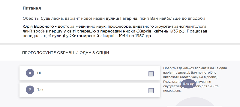 Зазначимо також, що у голосуванні щодо перейменування вулиці Гагаріна участь брала 351 особа.