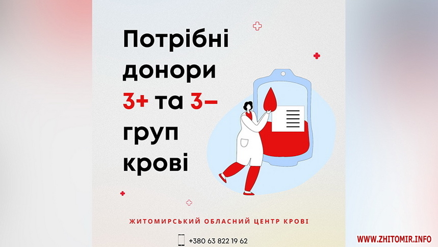 «На сьогодні у нас склався дефіцит третьої групи крові з позитивним резусом та третьої групи крові з негативним резусом», – говорить директор Житомирського обласного центру крові Анатолій Чугрієв.