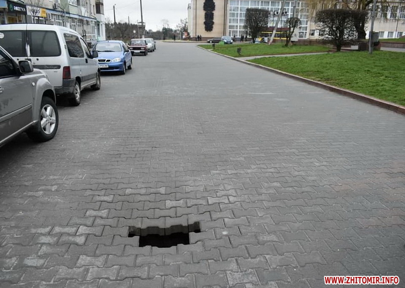 Як повідомляв Житомир.info, 8 червня 2020 на Музикалці в Житомирі провалився асфальт, тоді в «пастку» одним колесом потрапила вантажівка. А 19 червня 2021 року на майдані Соборному у Житомирі вантажівка провалилася під асфальт.