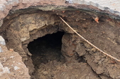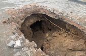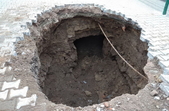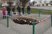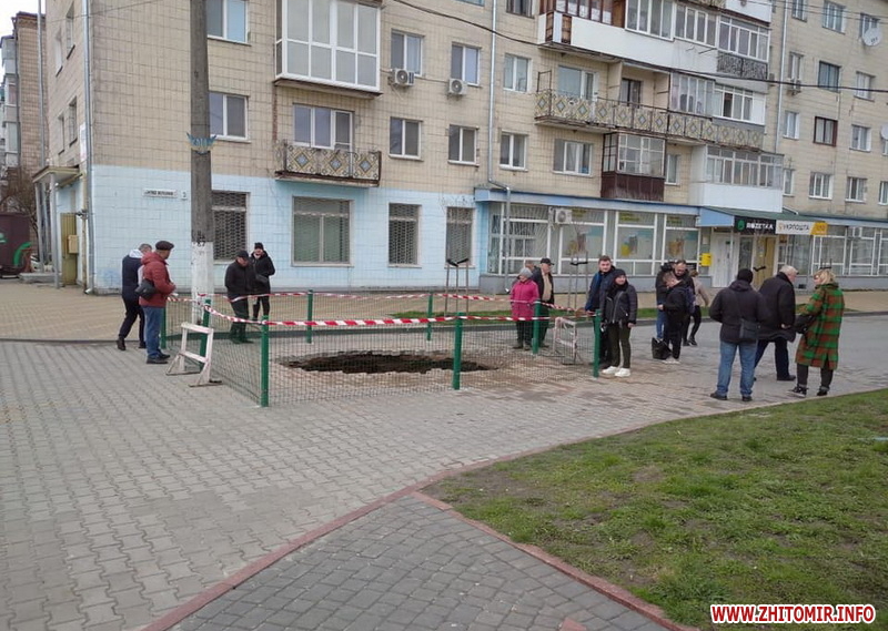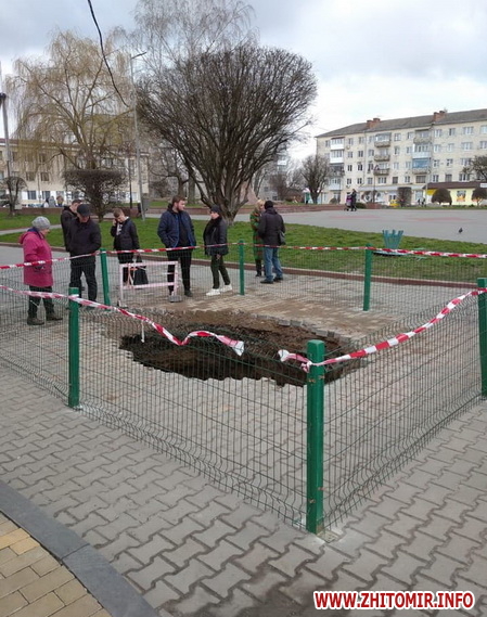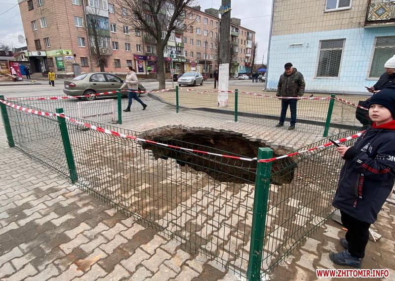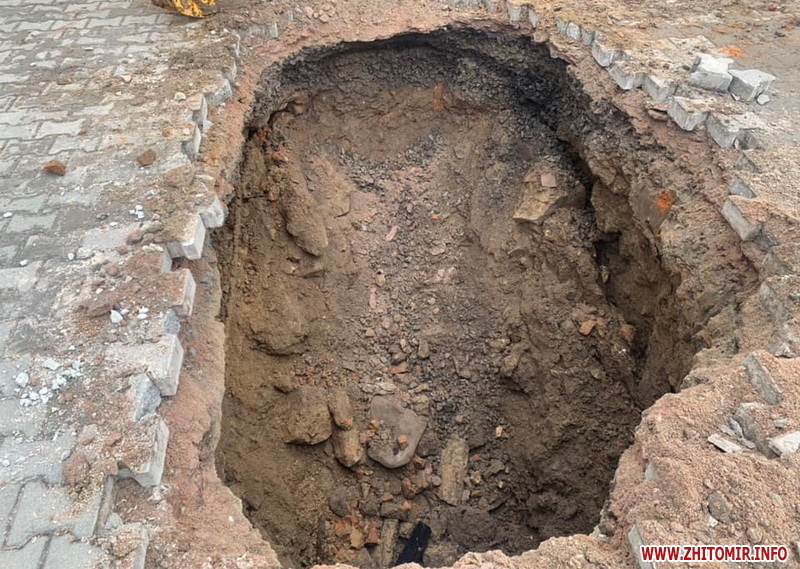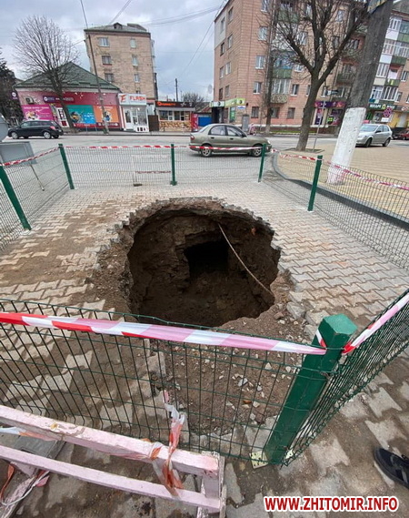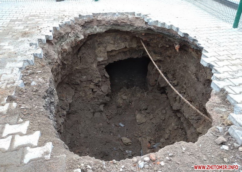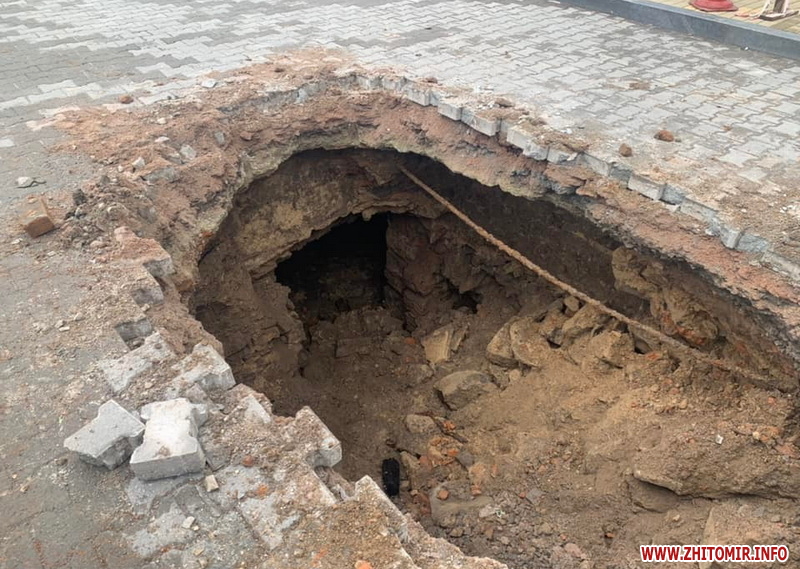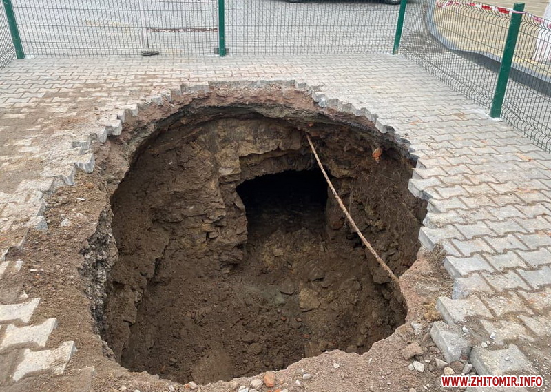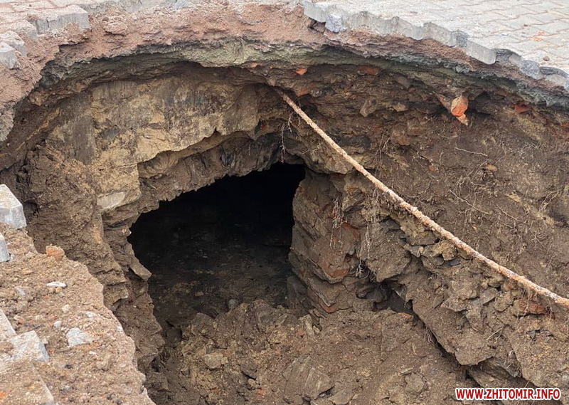 У центральній частині міста Звягель на Житомирщині утворилося провалля, під яким видно підземну споруду, котру зараз досліджують.