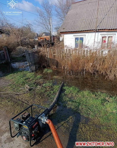 Нагадаємо, упродовж доби 5 квітня бійці ДСНС відкачували ґрунтові води з приватних домоволодінь. Зокрема, у м. Малин Коростенського району підтопило житловий будинок, гараж та дровітник. Вода вже потрапила у помешкання. Рятувальники загалом відкачали близько 20 куб. м води. Аналогічну допомогу бійці ДСНС надавали і в с. Білокоровичі Коростенського району. Там ґрунтовими водами затопило близько 50 соток території. Відкачали ж більше 200 куб. м води. Для цього вогнеборці застосовували і мотопомпу, і пожежний автомобіль.