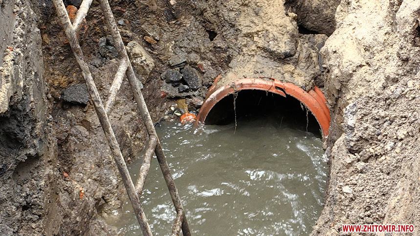 «Раніше колектори будували із залізобетонних і керамічних труб. Каналізація має таку властивість – випаровуватись, і утворюється газова корозія, а в процесі експлуатації верхня частина каналізаційної труби підгниває. За 40 років дуже багато каналізаційних трубопроводів стали аварійними. Під час опадів, дощів, колектор працював на повне наповнення, і вода підмила верхню стінку у цьому місці. Відповідно, утворився обвал. Ми його ремонтуємо, вставимо нову пластикову трубу, яка вже стоятиме більше 50 років», – розповідає директор КП «Житомирводоканал» Роман Ілик.