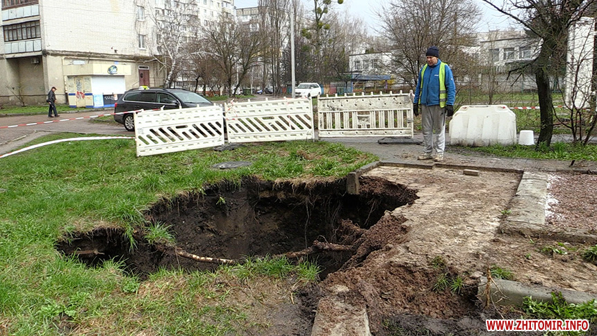 Вранці 10 квітня у Житомирі на вулиці Гагаріна та проїзді Тутковського утворилися провалля. Згодом з’ясувалось, що там прорвало два каналізаційні колектори. І всьому виною, кажуть комунальники, стали рясні опади та застарілий трубопровід.