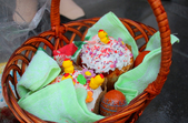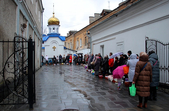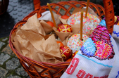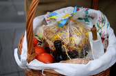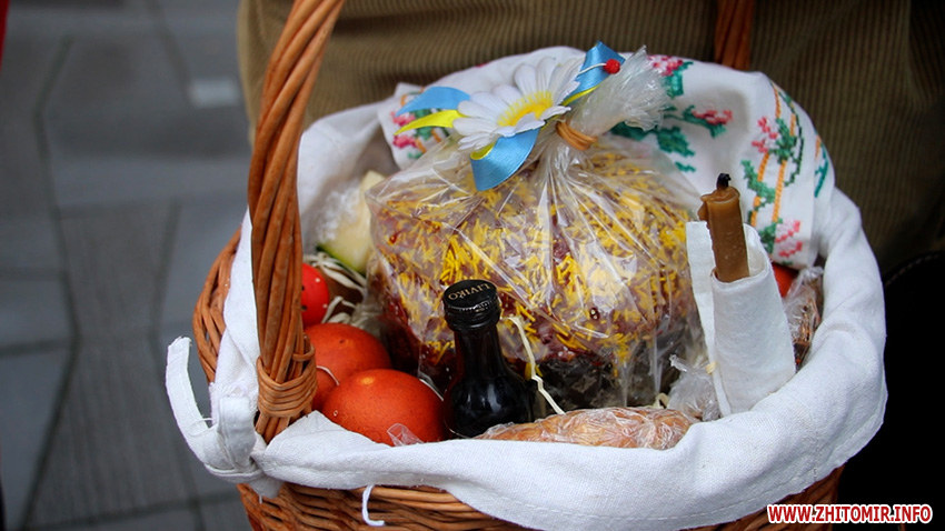 Люди вишиковуються у дворі храму з кошиками, прикрашеними декоративними квітами, а подекуди й застеленими вишитими рушниками. Що ж до вмісту кошиків, то він у містян мало чим відрізняється: паски, крашанки, сир, ковбаси та м’ясо. Освячення відбувається майже безперервно – одні освятили, інші прийшли їм на заміну.