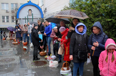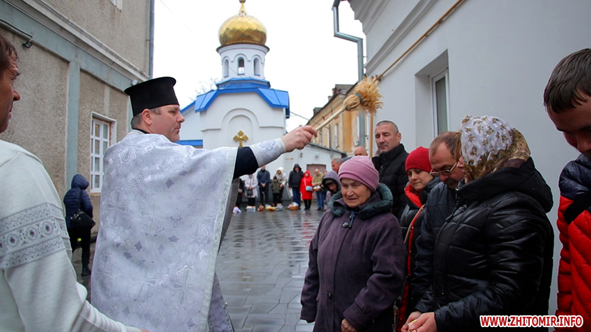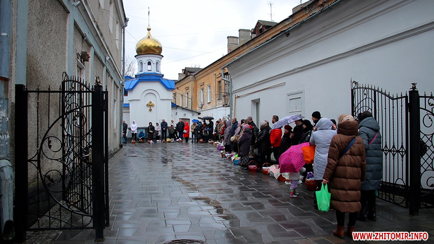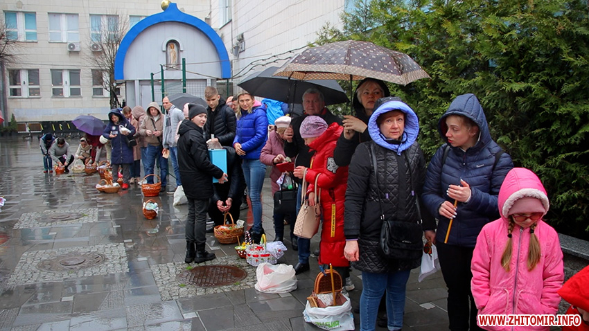 Попри дощову погоду по обіді 15 квітня до Свято-Михайлівського кафедрального собору в Житомирі стали сходитися віряни для освячення великодніх кошиків.