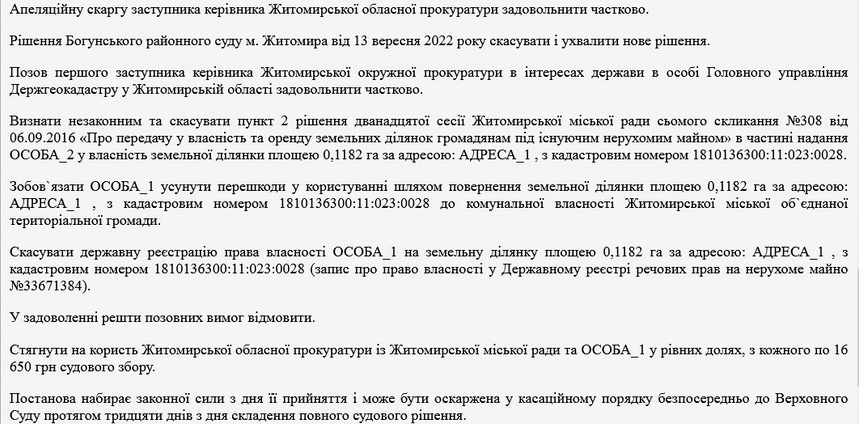Скріншот з рішення Житомирського апеляційного суду від 11.04.2023