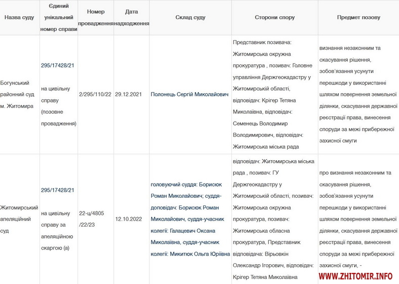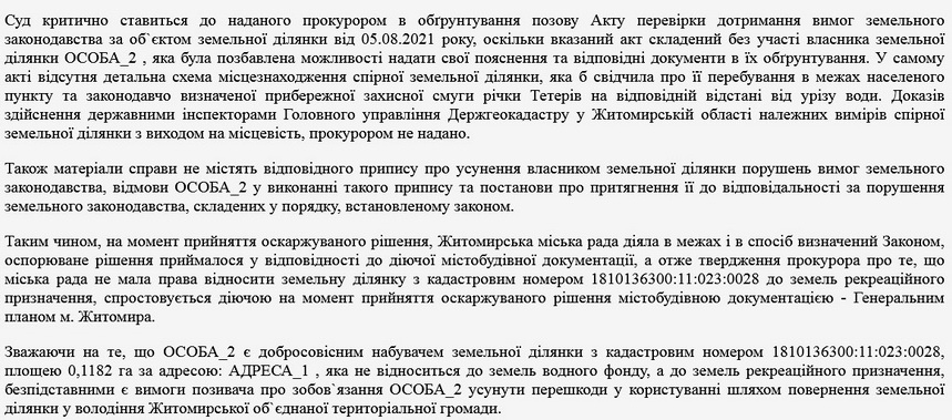 Журналісти Житомир.info знайшли рішення судів, про які повідомляє прокуратура, та інформацію про власників земельної ділянки площею 0,1182 га – колишнього і нинішнього.