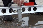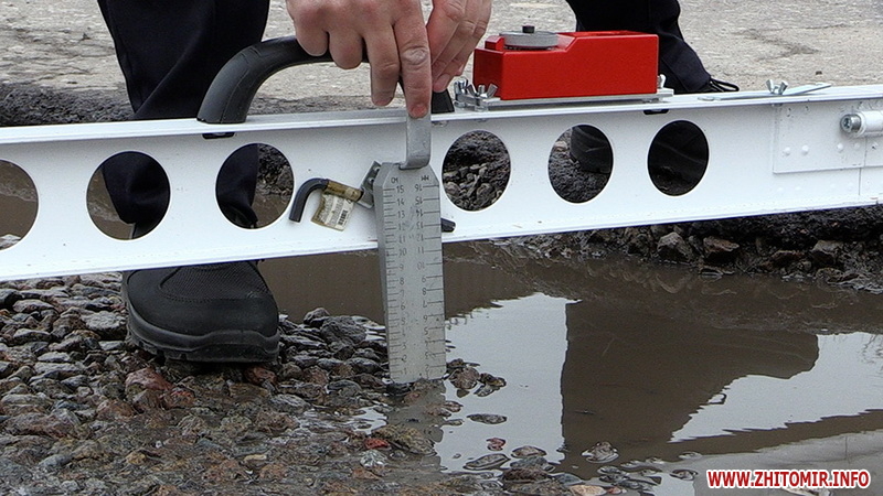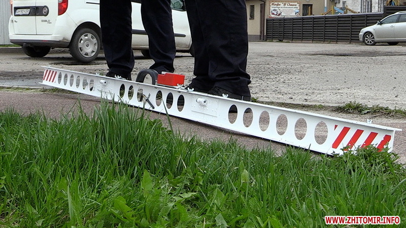 «Основний прилад, який найчастіше використовується під час обстеження - це рейка дорожня. Вона призначена першочергово для визначення та заміру вибоїн, ямковості, її глибини, що вже свідчитиме чи є порушення норм, чи немає», - розповідає старший інспектор відділу безпеки дорожнього руху патрульної поліції в Житомирській області Руслан Хомич.
