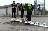Озброївшись спеціальним вимірювальним приладом, інспектори прямують на обстеження і за першою ж адресою фіксують порушення дорожнього покриття.