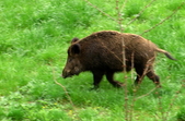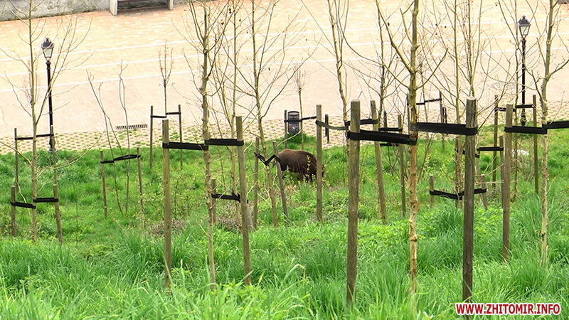 Дикий кабан посеред дня 20 квітня гуляє у житомирському парку. Тварину помітили ще напередодні ввечері.