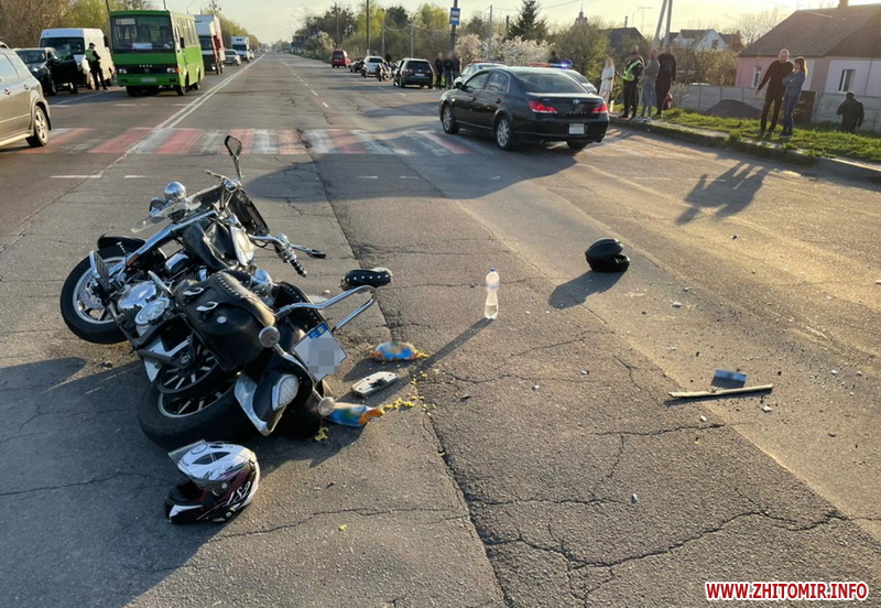 У Житомирі 23 квітня на Київському шосе сталася ДТП за участю мотоцикла та легковика, внаслідок якої травми отримали водій та пасажирка двоколісника, їх ушпиталили до реанімації.
