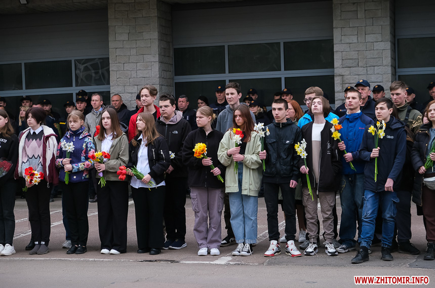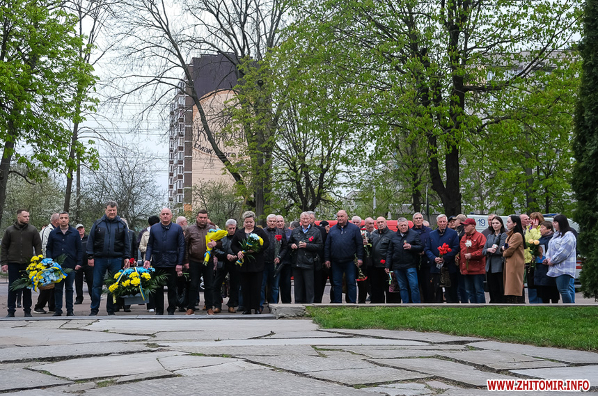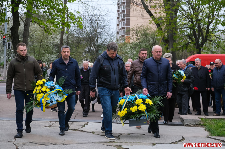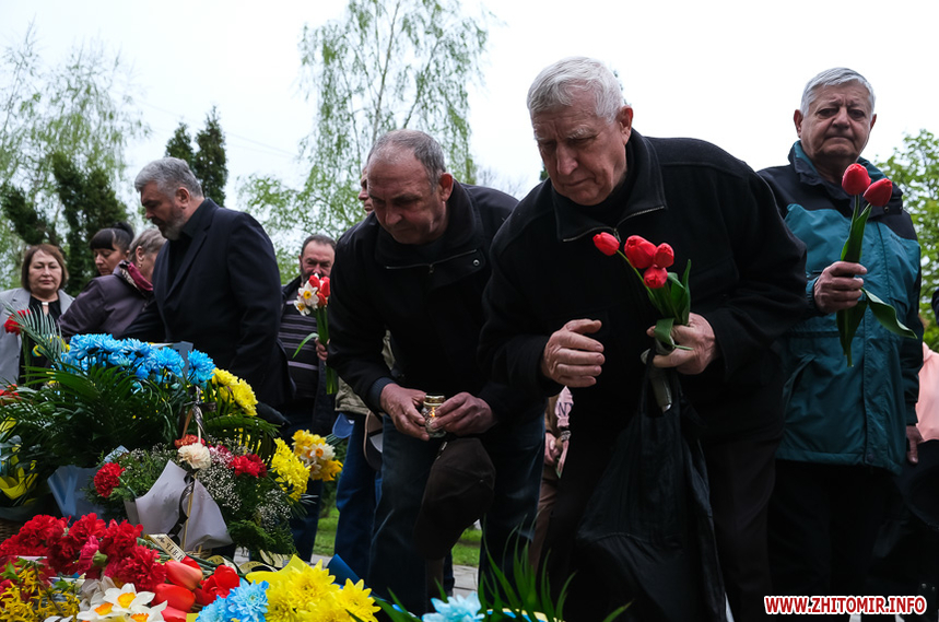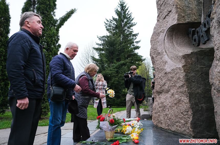 Представники влади, ліквідатори аварії на ЧАЕС, правоохоронці, учні міських шкіл та небайдужі житомиряни вшанували пам'ять покладанням квітів до меморіальної дошки пам’яті першого Міністра Мінчорнобиля України Г.О. Готовчиця та меморіального пам’ятника працівникам органів внутрішніх справ – жертвам Чорнобиля, пам’ятних знаків «Чорна біль» та «Пожежникам, які врятували світ».