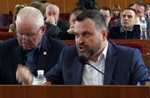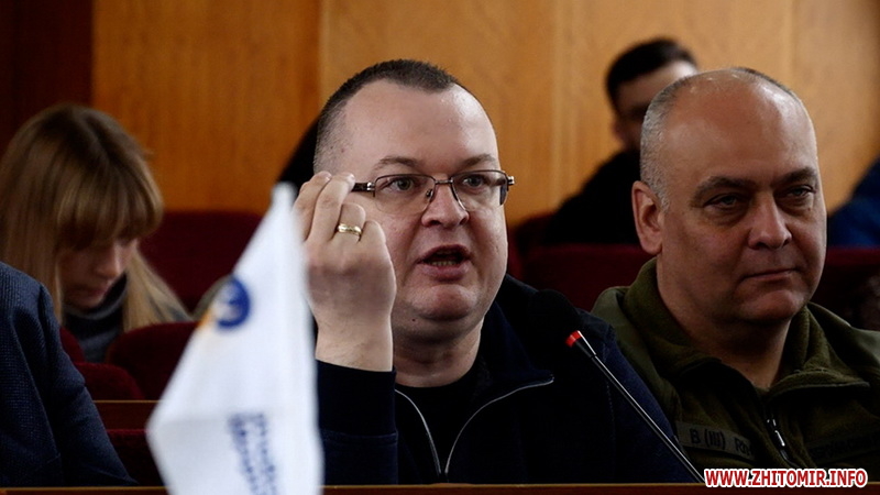 «Щоб ніхто не звинуватив нас у тому, що ми не хочемо купувати житло для військових. Моє прохання проголосувати і в протокол внести редакційну правку за пропозицією Віталія Івановича (ред., Бунечка) в.о. голови Житомирської обласної ради і погоджувальної ради», - говорить депутат Житомирської обласної ради Руслан Годований.