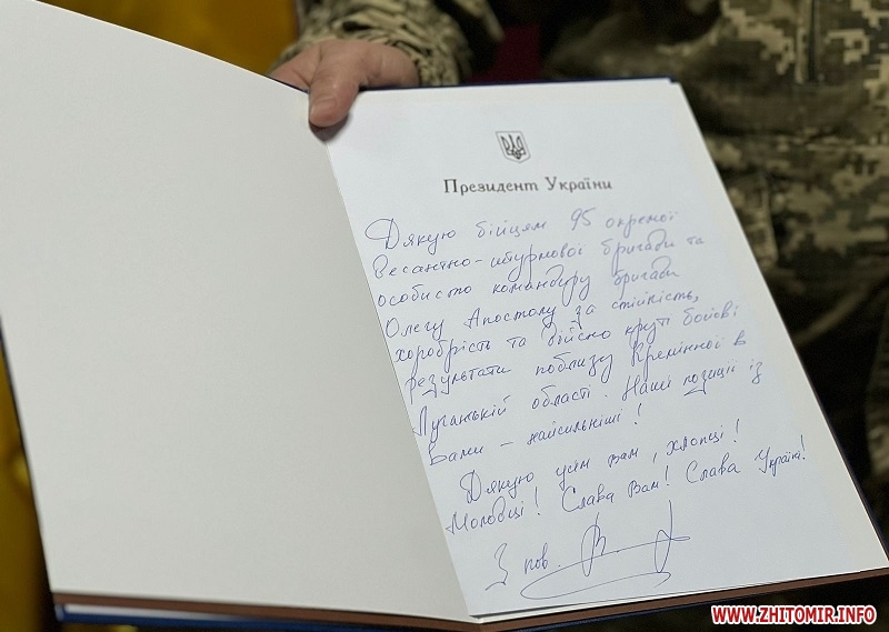 Як повідомляв Житомир.info, указом від 28 червня 2022 року президент Володимир Зеленський відзначив почесною відзнакою «За мужність та відвагу» житомирську 95-у окрему десантно-штурмову бригаду.
