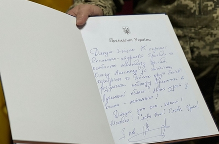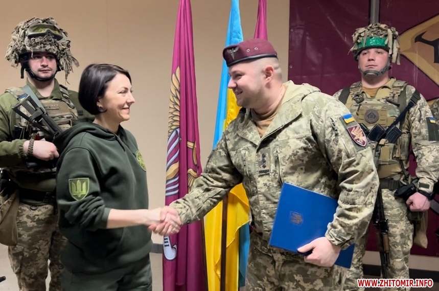 Зазначається, що передала лист заступниця міністра оборони України Ганна Маляр. Вона наголосила, що житомирські десантники перші, хто отримав такий лист-подяку від президента України.