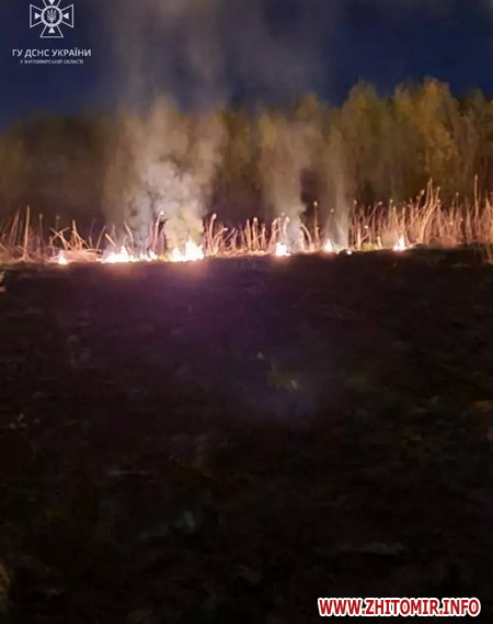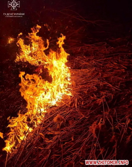 Як повідомляв Житомир.info, 25 березня 2023 року упродовж доби на території Житомирської області рятувальниками ліквідовані 14 займань минулорічного сухостою, стерні та чагарників, що виникали поблизу населених пунктів та в їх межах, загалом вогнем пройдено майже 5 га території.