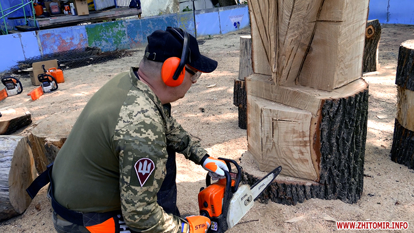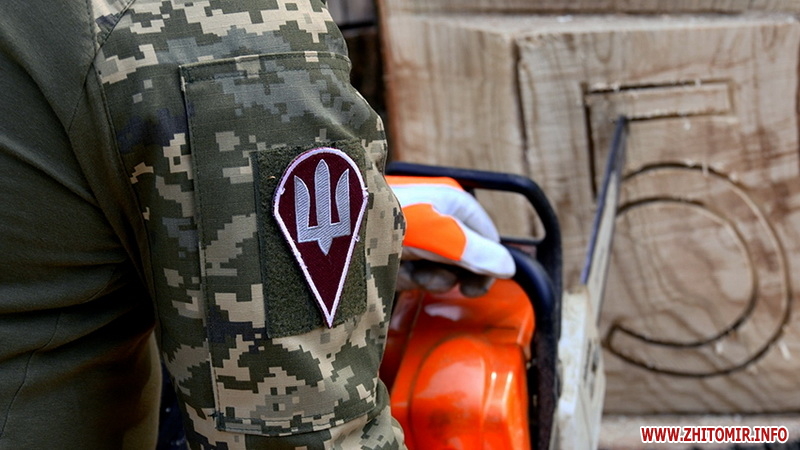 Працює скульптор у житомирському парку, запрошує містян подивитися на процес створення, а ще долучитися до збору коштів для житомирських десантників.