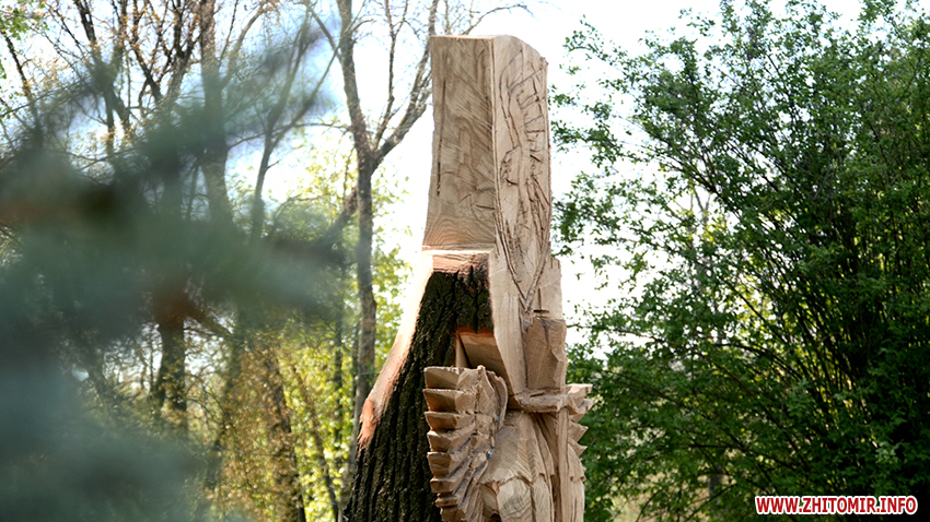 «Це шматок того дерева, дуба, що у нас впав. Це верхня його частина. Ми надали таку можливість для виготовлення скульптури. Дана скульптура, наскільки я розумію, вона проситься розташувати її у самій 95-й бригаді. Швидше за все, вона буде розташована там, це вже рішення буде приймати керівництво 95-ї бригади. Я б не проти, щоб вона залишалася у парку, мені теж було б дуже приємно», - розповідає директор КП «Парк» Сергій Бондар.