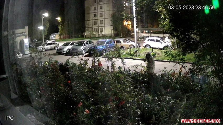 У Житомирі на вулиці Вітрука невідомі посеред ночі вкрали квіти з клумби. Жінка вирвала кілька тюльпанів скраєчку, а чоловік потоптався по клумбі й зірвав цілий букет. Все це зафільмувала камера одного з мешканців, саме його дружина облаштувала біля будинку квітник та прикрасила іграшками. Дмитро був вдома 5 травня, тому нам вдалося з ним поспілкуватися. Чоловік каже: прикро, що одні створюють красу, а інші знищують.