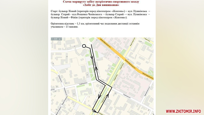 Нагадаємо, в центрі Житомира 20 травня планували провести «Забіг у вишиванках» з метою популяризації здорового способу життя серед мешканців громади, об’єднання навколо ідеї відзначення Всесвітнього дня вишиванки.