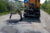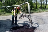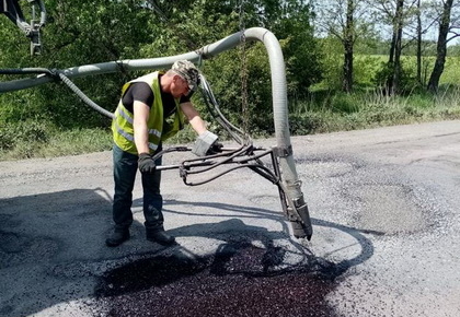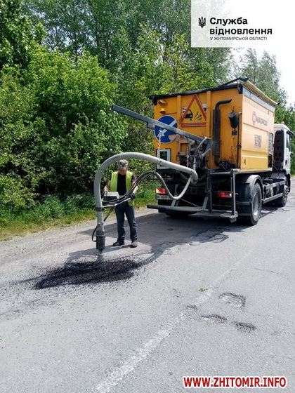 «За рахунок експлуатаційного утримання автошляхів проводимо ремонт вибоїн на регіональній дорозі Р-18 Житомир – Попільня – Сквира – Володарка – Ставище. Підрядна організація працює пневмо-струменевим методом, що дозволяє швидко усунути дефекти дорожнього покриття та економно використовувати державні кошти», – йдеться у повідомленні.