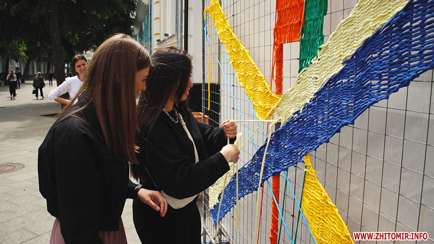 17 травня на вулиці Михайлівській вишивають полотно «Моє місто». З синьо-жовтих ниток вже вимальовується логотип Житомира. Всіх охочих запрошували долучитися до створення полотна, житомиряни не проходять повз та з радістю беруться за роботу.