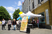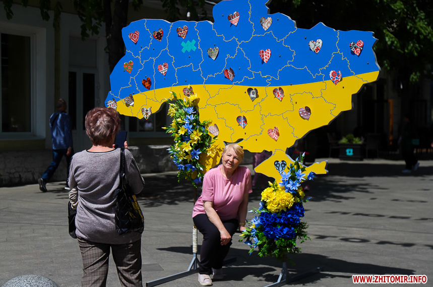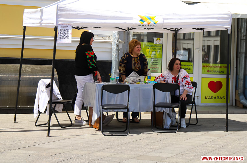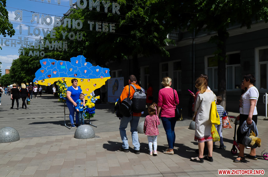 Усі охочі можуть сфотографуватися на фоні двох фотозон та на фоні вишитого логотипа Житомира, який містяни самотужки створювали до Дня вишиванки.