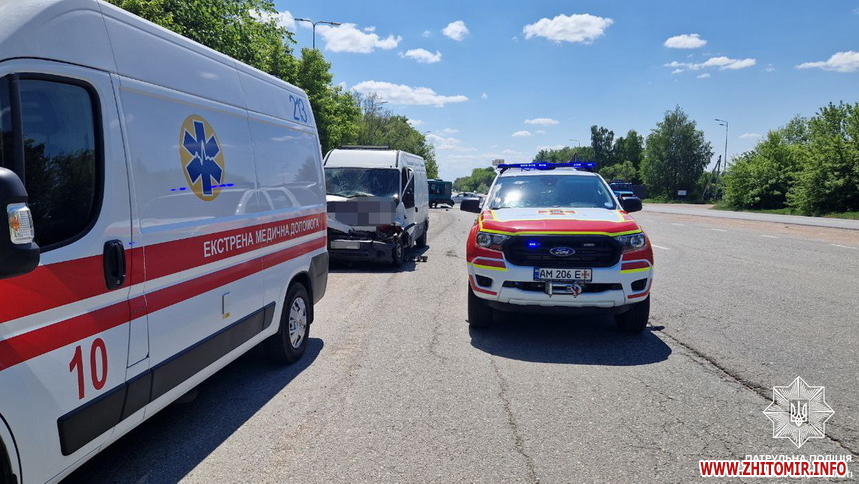 В обідню пору 22 травня на бердичівській трасі сталася ДТП за участю буса й маршрутки.