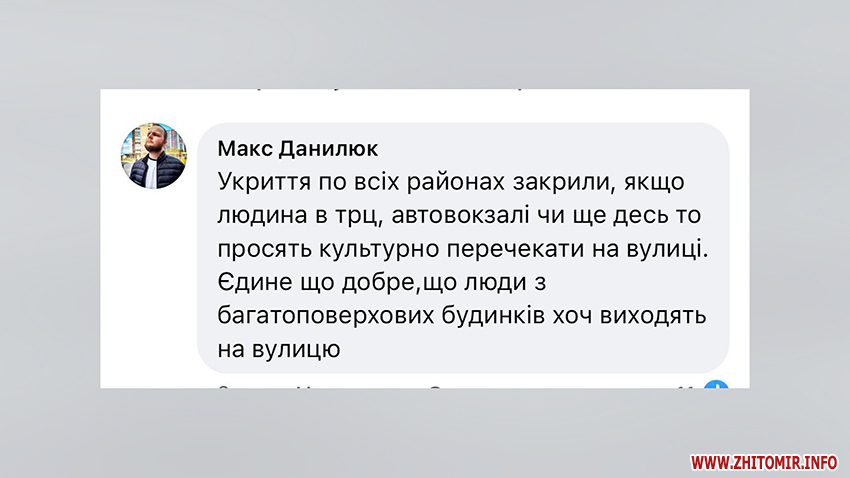 Аби мінімізувати жертви і їм запобігти українців просять у разі отримання сигналу повітряної тривоги негайно прямувати до найближчого укриття. Але під час ворожої атаки під ранок 28 травня деякі житомиряни нарікали, що укриття закритті, або їх не пускали туди.