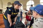 5 травня на пероні Бердичівського вокзалу волонтери, поліція, представники органів влади та уповноваженого з прав людини, соціальні служби, рятувальники та психологи зустріли п’ятий евакуаційний потяг, який привіз 13 дорослих, 7 дітей, 3 котів та собаку з Донеччини.