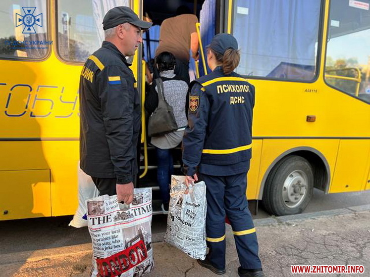Далі рятувальники доправили людей до автобуса, призначеного для подальшого транспортування їх до місця тимчасового проживання.