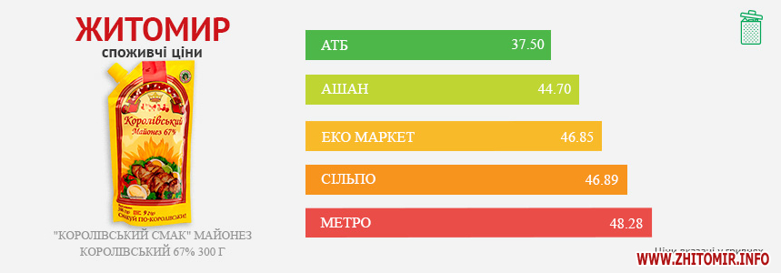 Моніторинг здійснено на основі інформації, отриманої за методом контрольної закупки 09.06.2023 р. у місцях продажу: АТБ, пр. Миру, 15 А, Ашан, вул. Київська, 77, Метро, вул. Ватутіна, 55-в, Сільпо, пл. Житній ринок, 1, Еко Маркет, вул. Мала Бердичівська, 2/7