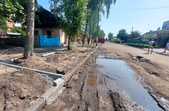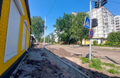 Станом на 10:30 год. 27 червня на вулиці рух транспорту перекритий, асфальтне покриття знято на більшій частині вулиці й тротуару. Ближче до перехрестя з вулицею Князів Острозьких працює близько десятка працівників та дві одиниці техніки.