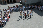 Діти у вишиванках та з жовто-блакитними стрічками у руках танцювали під сучасні українські хіти та вправлялися у вікторині зі знання історії виникнення державного свята.