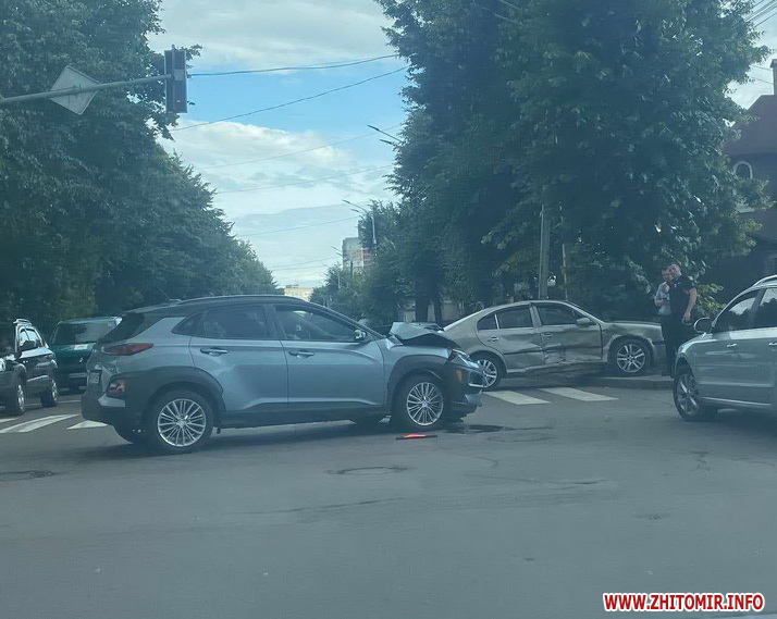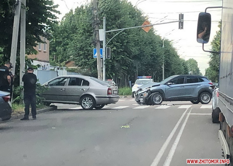 У Житомирі 28 червня близько 16 години на перехресті вулиць Івана Мазепи та Героїв Крут зіткнулися Skoda та Hyundai, на місці є патрульні.