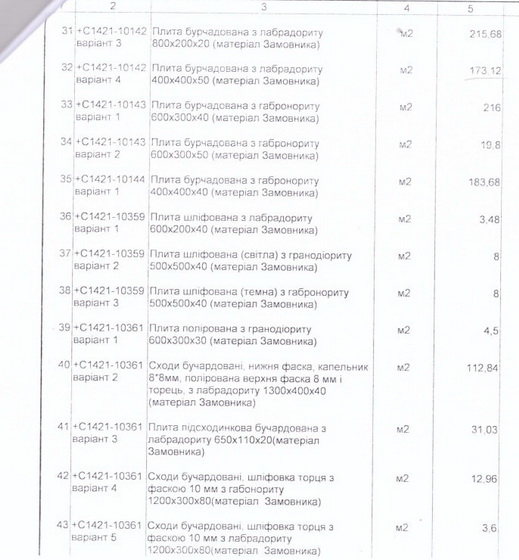 За технічних вимог, приватна ремонтно-будівельна фірма «Комунальник» має розібрати старе покриття, встановити основи нового покриття та влаштувати покриття доріжок і тротуарів гранітною плиткою, яка, за даними закупівлі, є «матеріалом замовника».