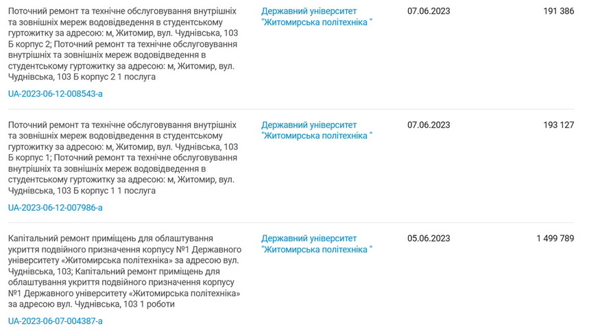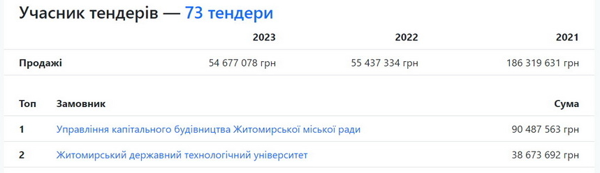 За даними Опендатабот, університет «Житомирська політехніка» з 2021 року уклав договори з ПРБФ «Комунальник» на загальну суму 38,7 млн грн.