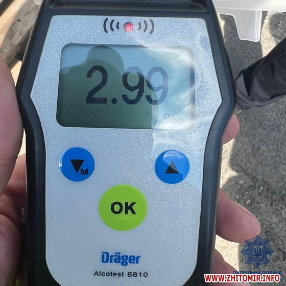 Кермувальник погодився пройти освідування за допомогою приладу Драгер на місці зупинки. Результат — 2,99 проміле алкоголю.