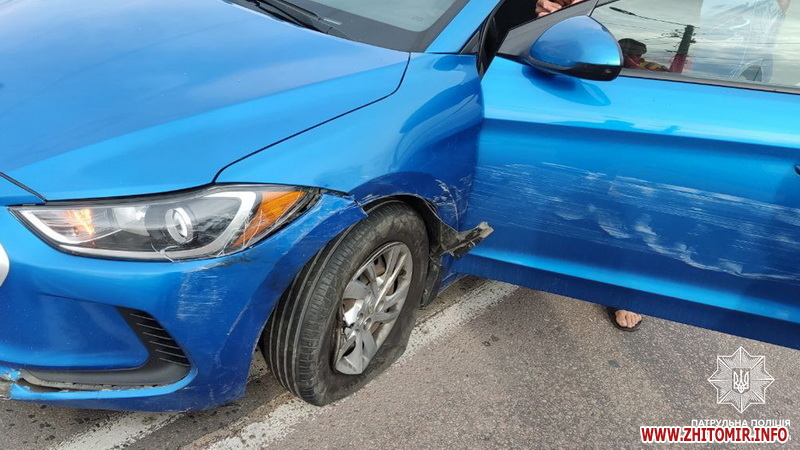 Нагадаємо, увечері 4 липня на перехресті вулиць Довженка та Ріхтера у Житомирі зіткнулися KIA та Chrysler: водій KIA здійснив рух на заборонений сигнал світлофора, в результаті чого відбулось зіткнення з автомобілем Chrysler, який рухався на дозволений сигнал світлофора на вулицю С. Ріхтера. Під час ДТП транспортні засоби отримали механічні пошкодження з матеріальними збитками. На керманича автомобіля KIA інспектори склали протокол за ст. 124 (Порушення ПДР, що стало причиною ДТП) КУпАП. В автопригоді ніхто не травмувався.